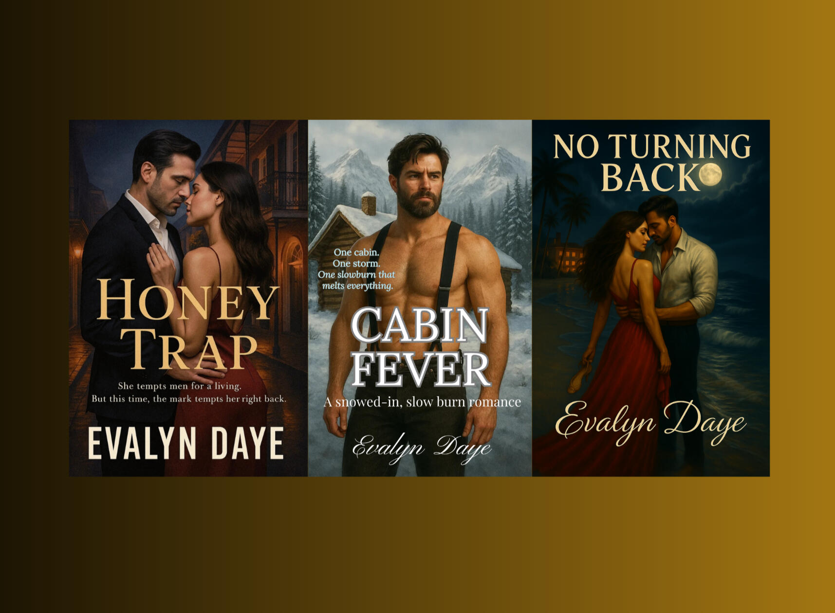Evalyn Daye writes bold, high-heat romantic suspense following one unforgettable couple through a world of deception, desire, and deadly secrets. In The Honey Trap Series, Rayna and Alex are caught in a slow-burning war between passion and peril—where every choice could cost them everything. Smart heroines. Dangerous men. Obsession. Betrayal. And love… if they can survive it.If you're craving one couple, one explosive connection, and one hell of a ride—welcome to Evalyn Daye.